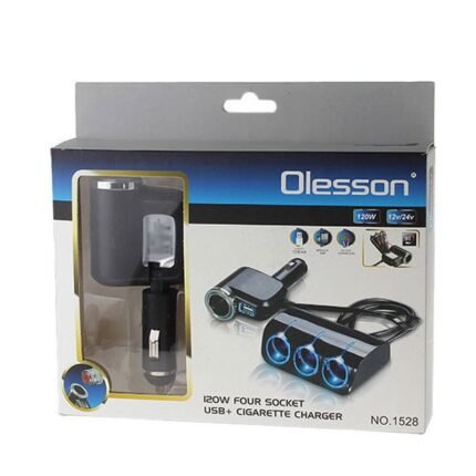 OLESSON Φορτιστής αναπτήρα αυτοκινήτου USB 12-24V 120w – Four socket USB & cigaretter charger NO.1528
