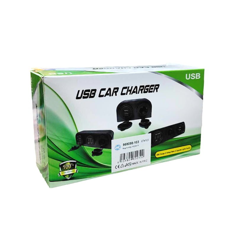 Αναπτήρας Αυτοκινήτου Φορτιστής USB Διπλή Υποδοχή & Βολτόμετρο PA20419 – Car USB Charger