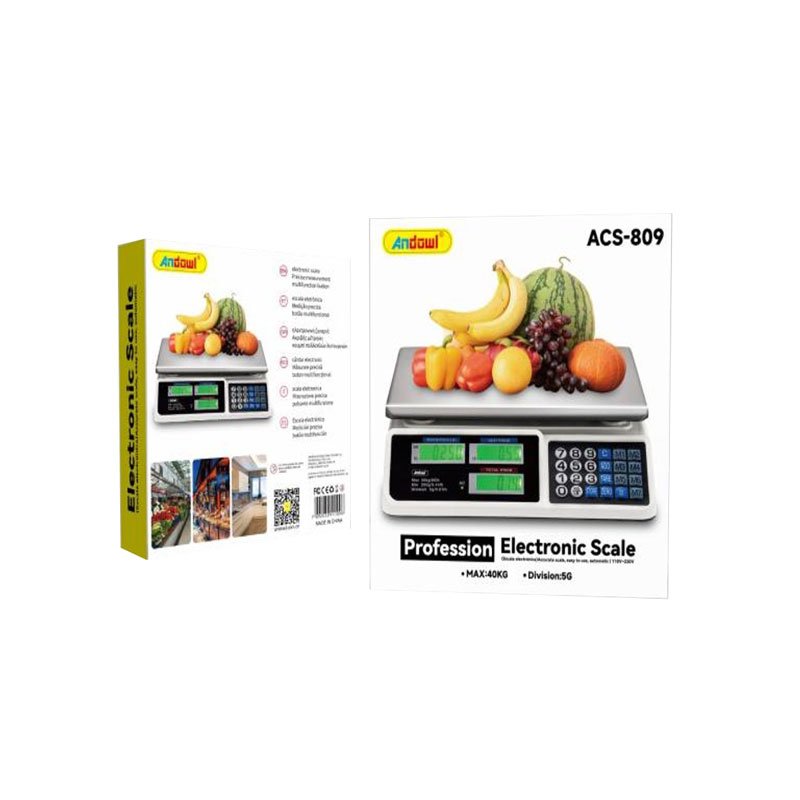 Ηλεκτρονικές ζυγαριές συναλλαγών ACS-809. Ηλεκτρονικές ζυγαριές με λειτουργίες συναλλαγών. Χρησιμοποιείται για τη ζύγιση και τον προσδιορισμό του κόστους των αγαθών σε εγκαταστάσεις εμπορίου και εστίασης. Δημοφιλές στις αγορές και στο πλανόδιο εμπόριο. Ενσωματωμένη μπαταρία.