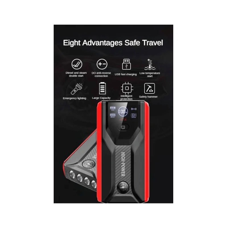 Μπορεί να ξεκινήσει με απλή καλωδίωση. Μόλις το χρησιμοποιήσετε, μπορείτε να διαχειριστείτε μόνοι σας την απώλεια ισχύος του αυτοκινήτου.Μπορεί επίσης να ξεκινήσει το χειμώνα, αντιμετωπίστε εύκολα διάφορα σκληρά περιβάλλοντα:Δεν φοβάται τις κρύες βόρειες περιοχές, Δεν φοβάται την υψηλή θερμοκρασία μέσα στο αυτοκίνητο το καλοκαίρι: -10℃ ~ +85℃Διπλή εκκίνηση Diesel and Gas, Instant Start:Αυτοκίνητο βενζίνης 6,0 λίτρων, Υποστήριξη οχημάτων βενζίνης 4,0 λίτρων4,0 λίτρων πετρελαιοκίνητου αυτοκινήτου, Υποστήριξη οχημάτων ντίζελ 3,0 λίτρωνΕφαρμόζεται σε διάφορα μοντέλα:Αυτοκίνητο, Minivan, SUV, Μοτοσικλέτα, Van, Μικρό pickup, Jeep, Dune buggyΓιατί είναι απαραίτητο να αποκτήσετε ένα jump starter;1. Μεγάλη διάρκεια αναμονής εξαντλείται η μπαταρία.2. Προετοιμαστείτε για ένα μακρύ ταξίδι οδήγησης.3. Το αυτοκίνητό σας δεν μπορεί να ξεκινήσει λόγω χαμηλής ισχύος ή παγωμένου χειμώνα.Παρακαλούμε δώστε προσοχή σε αυτή τη σημείωση:1. Παρακαλούμε φορτίστε μετά την παραλαβή της εκκίνησης.2. Φόρτιση κάθε 3 μήνες, η χαμηλή ισχύς μπορεί να αποτύχει στην εκκίνηση.3. Φορτίζετε το tablet του τηλεφώνου μόνο περιστασιακά. η απόδοση είναι περίπου 50%.4. Η ταχύτητα φόρτισης ή η ταχύτητα εκφόρτισης θα είναι γρήγορη κατά τη διάρκεια της τελευταίας ισχύος 15% της εκκίνησης.Παρακαλώ μην ανησυχείτε για αυτά τα προβλήματα. Αυτό είναι το χαρακτηριστικό των μπαταριών λιθίου υψηλής ταχύτητας και δεν θα επηρεάσει την ποιότητα του προϊόντος και την κανονική χρήση.