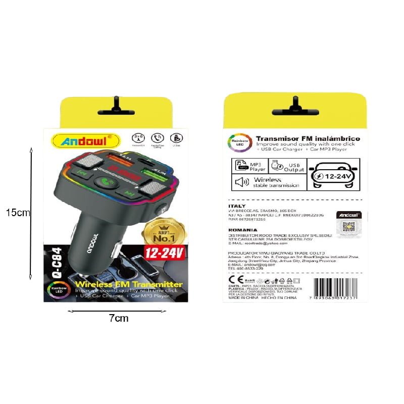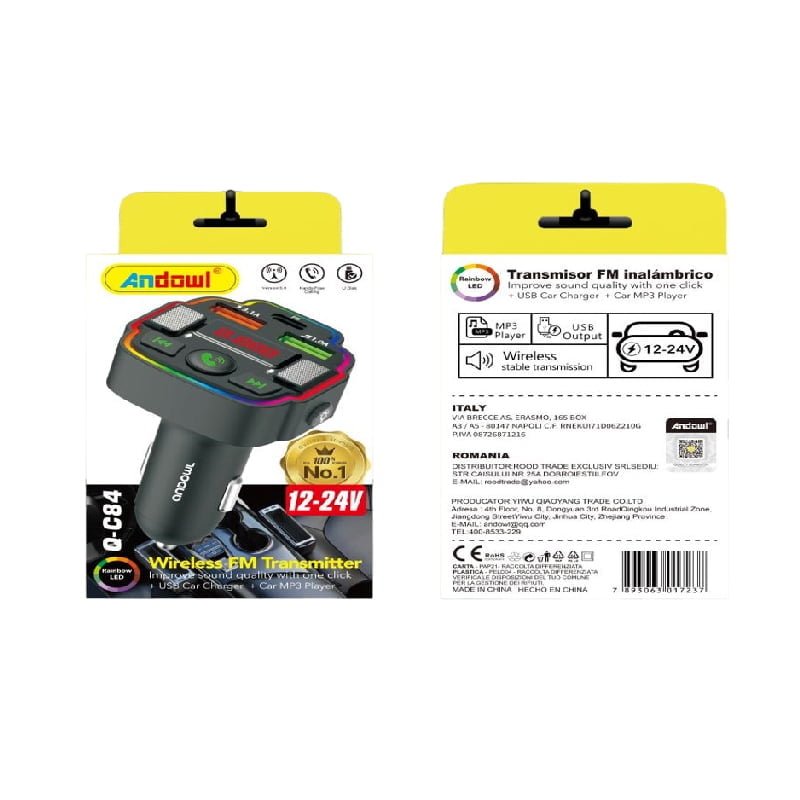 Andowl Πομπός Αυτοκινήτου Φορτιστής FM Transmitter 12-24v Q-C84 – Car FM Wireless Transmitter