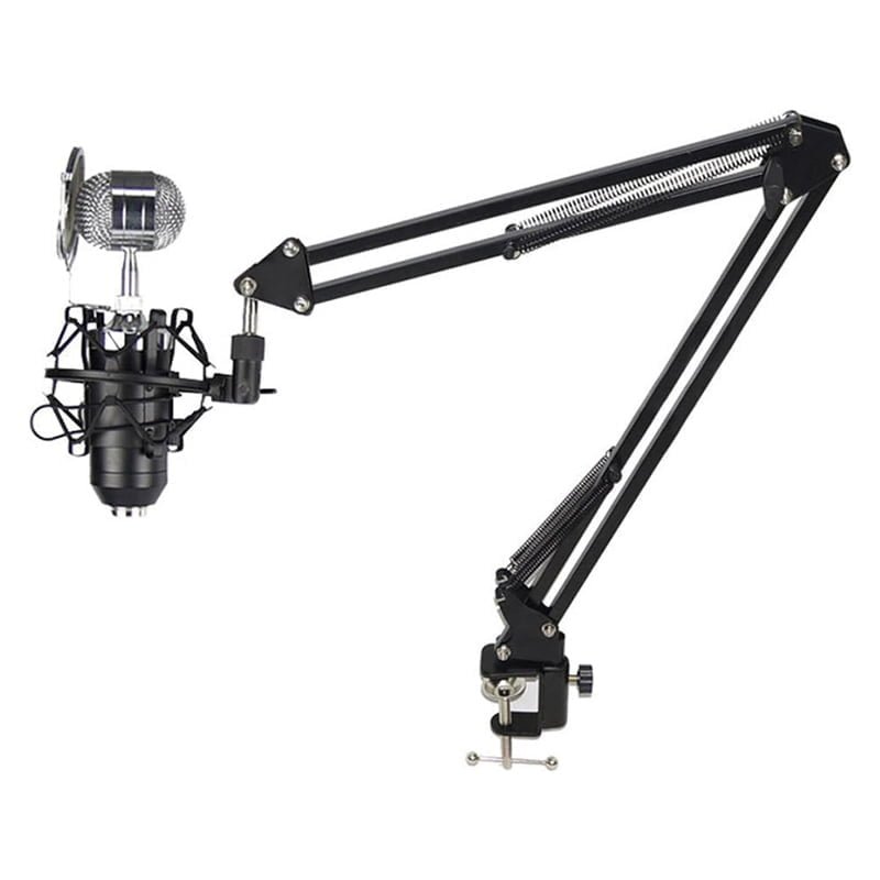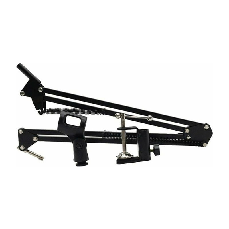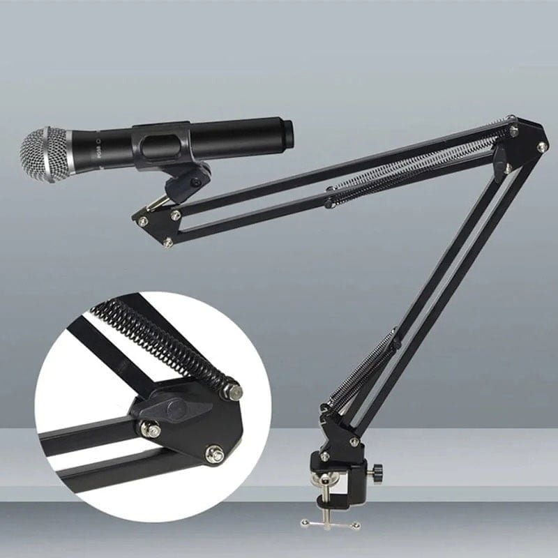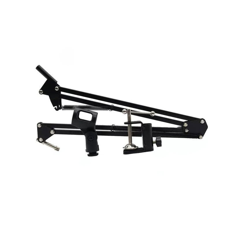 Ρυθμιζόμενο σταντ μικροφώνου από ατσάλι Andowl Q-A192, με μπράτσο τύπου ψαλίδι και πλαστικό κλιπ για το μικρόφωνο.