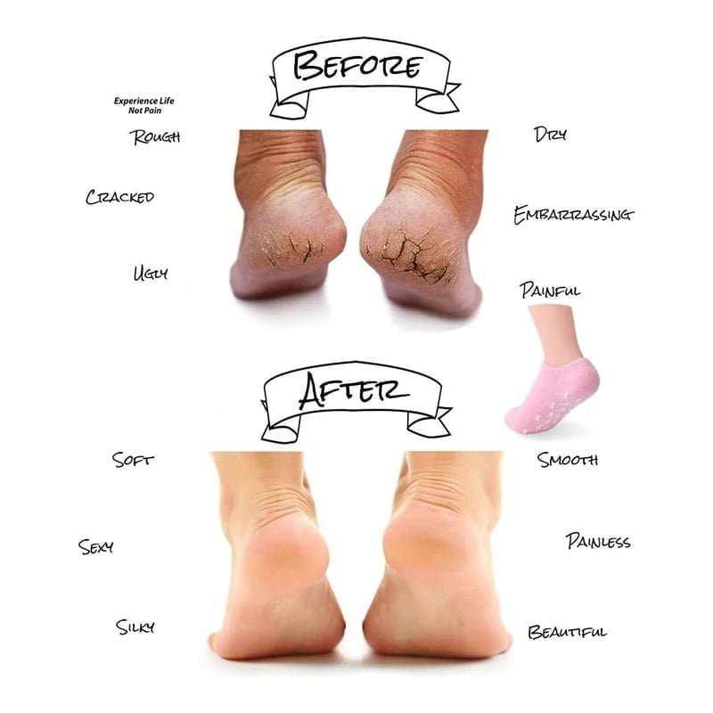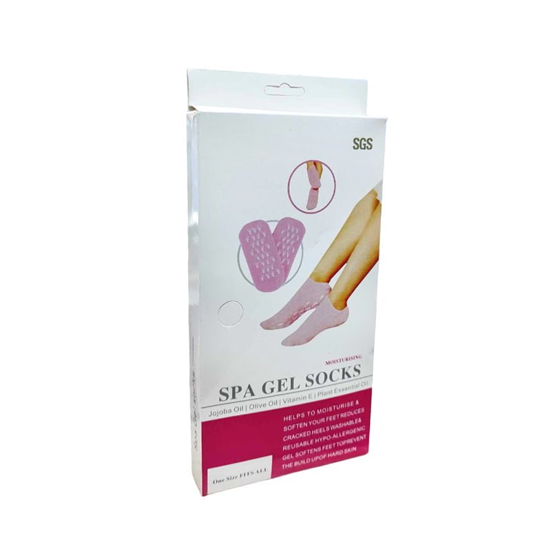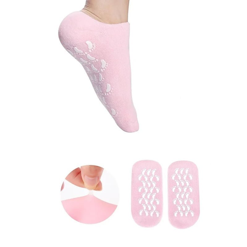 Κάλτσες με ειδική επίστρωση τζελ εμποτισμένο με ενυδατικά συστατικά για να κάνετε σπα ποδιών στο σπίτι. Φορέστε τις 20-30 λεπτά κάθε φορά για 2 με 4 φορές την εβδομάδα, αναλόγως με το πόσο αφυδατωμένα είναι τα πέλματά σας. Το τζελ περιέχει από μόνο του ενυδατικά έλαια που απελευθερώνται σταδιακά για να σας χαρίσουν βελούδινες πατούσες, αλλά για καλύτερα και πιο γρήγορα αποτελέσματα απλώστε πρώτα μια λιπαρή κρέμα στα πόδια σας. Σε αντίθεση με τις βαμβακερές κάλτσες που χρησιμοποιούμε συνήθως, δεν θα απορροφήσουν τις κρέμες αλλά θα φυλακίσουν την υγρασία.
