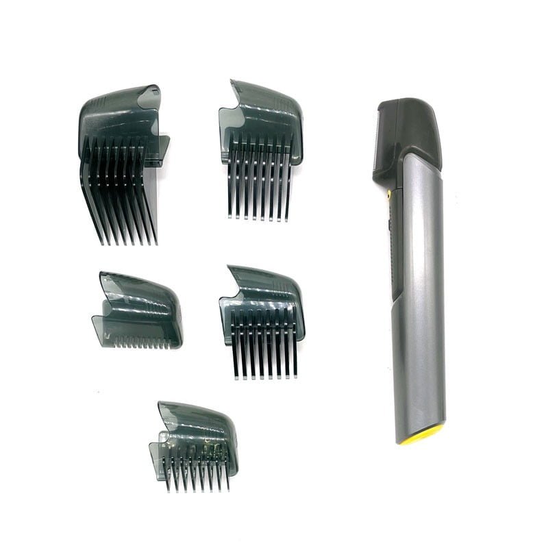 Η μονάδα περιποίησης λειτουργεί με 2 μπαταρίες ΑΑ, 5 εξαρτήματα κοπής μαλλιών: 4 χτένες κοπής μαλλιών, ώστε να μπορείτε να επιλέξετε το βέλτιστο μήκος και 1 προστατευτικό για την προστασία του δέρματος, ενώ περιποιείται σε ευαίσθητες περιοχές.