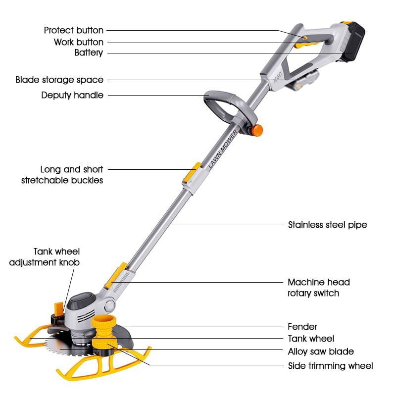 Το Φορητό Ηλεκτρικό Χλοκοπτικό επιτρέπει ισχυρή κοπή. Το ελαφρύ και εργονομικό σχέδιο επιτρέπει καλό έλεγχο σε διαφορετικές γωνίες εφαρμογής.