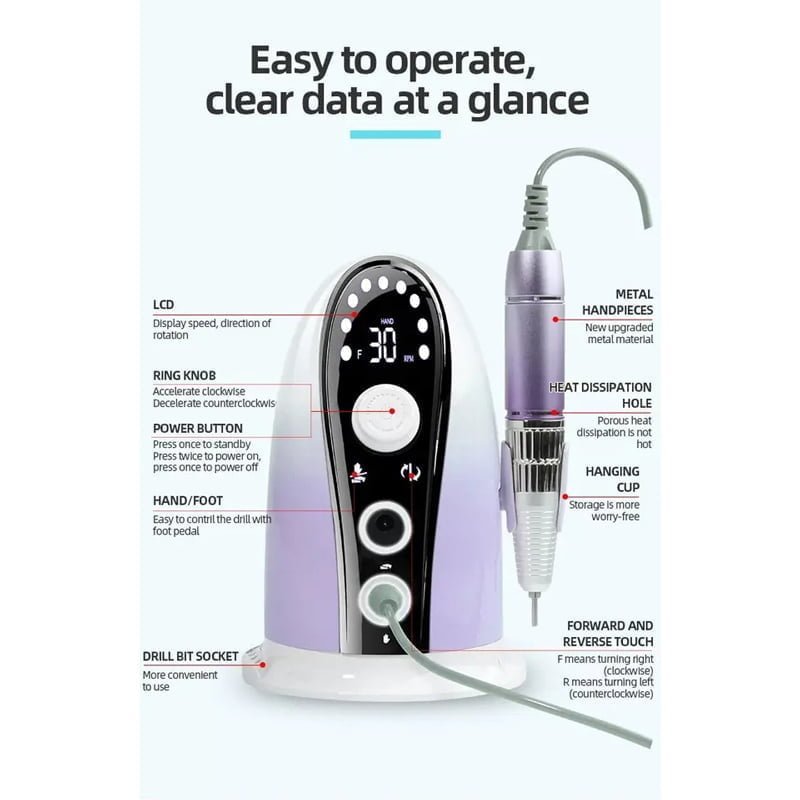 Η συσκευή μανικιούρ έχει κομψή σχεδίαση που ταιριάζει σε οποιοδήποτε σαλόνι ομορφιάς, υψηλής ισχύος 35W, το οποίο σας επιτρέπει να εκτελείτε μανικιούρ, διόρθωση και πεντικιούρ.