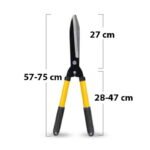 Επεκτεινόμενο ψαλίδι κλαδέματος μήκους από 57 – 75 εκατοστών με εργονομική λαβή από καουτσούκ. Είναι κατάλληλη για κοπή κλαδιών και ξύλων μικρής διαμέτρου. Μπορείτε να κλαδέψετε και να δώσετε σχήμα σε θαμνώδη και αναρριχώμενα φυτά όπως Αγγελική, πικροδάφνη, πιξάρι, φωτίνια, λιγούστρα, ελαιαγνούς, λεβάντα, τούγια, λεμονοκυπάρισσο, ρυγχόσπερμο, μπιγκόνια, βουκαμβίλια, γιασεμί, κισσό κλπ. Για να επεκτείνετε την λαβή γυρίστε την αριστερόστροφα και τραβήξτε την προς τα πίσω, έπειτα γυρίστε την δεξιόστροφα για να κλειδώσει.