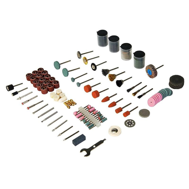 216 εξαρτήματα: δίσκους για κοπή και λείανση, πέτρες και φρέζες λείανσης, κυλίνδρους λείανσης και τσόχες λείανσης