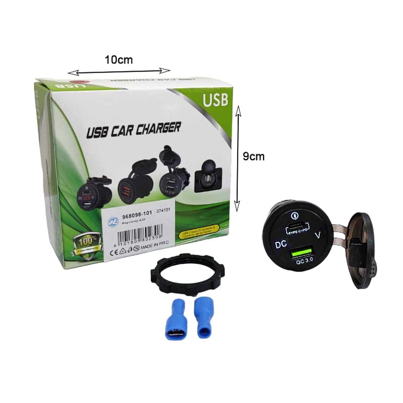 Φορτιστής Αυτοκινήτου Type-C+PD QC3.0 & Βολτόμετρο A39 – Car USB Charger