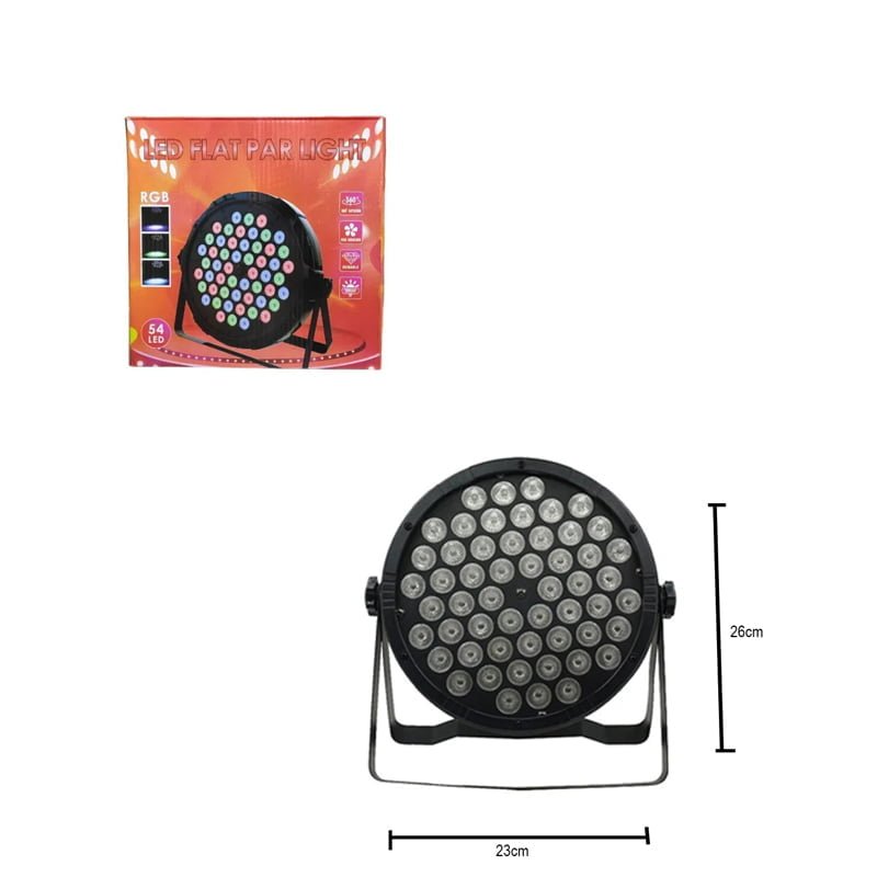 Ημι-επαγγελματικός προβολέας LED RGB ο οποίος σε συνδυασμό με κονσόλα φωτισμού μπορεί να αποδώσει οποιαδήποτε απόχρωση RGB. Διαθέτει λειτουργίες stand alone και music control (δυνατότητα συγχρονισμού με την μουσική). Το απόλυτο gadget για τα πάρτι σας.
