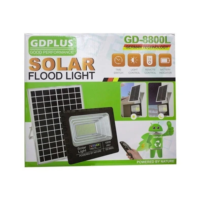 GDPlus Ηλιακός προβολέας τοίχου με τηλεχειριστήριο 100W GD-8800L – Solar Flood Light