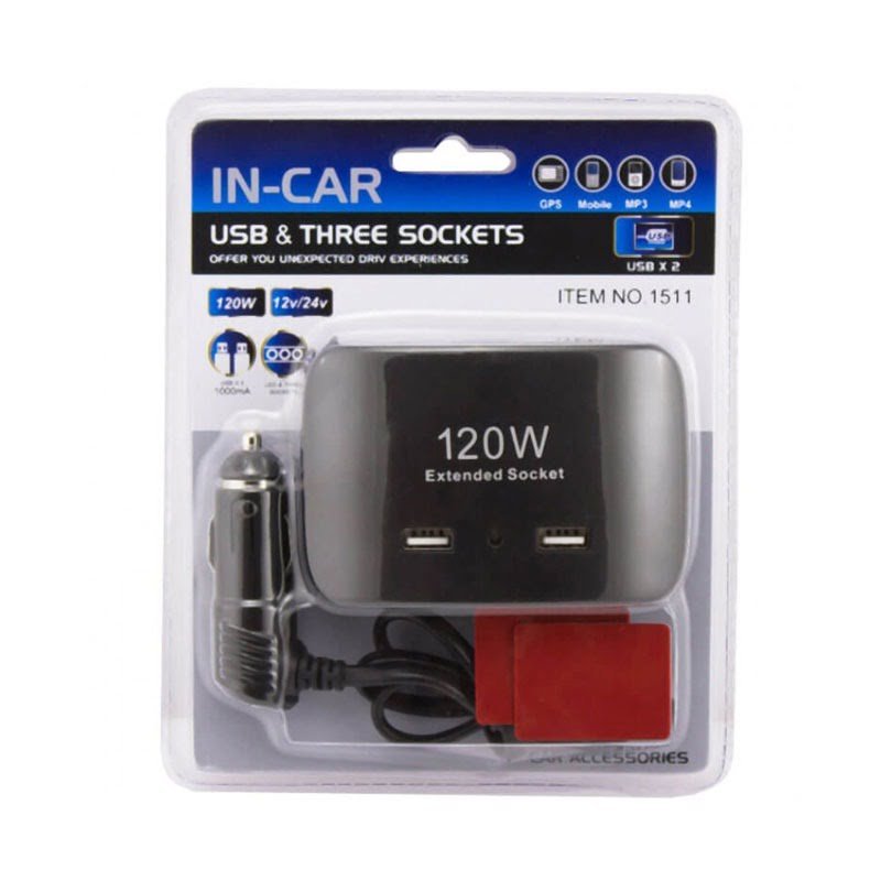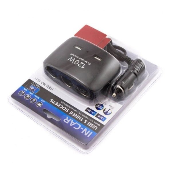 In-car Πολύπριζο αναπτήρα αυτοκινήτου 12V/24V 120W με 3 x παροχές/2 x USB – Socket charger NO.1511