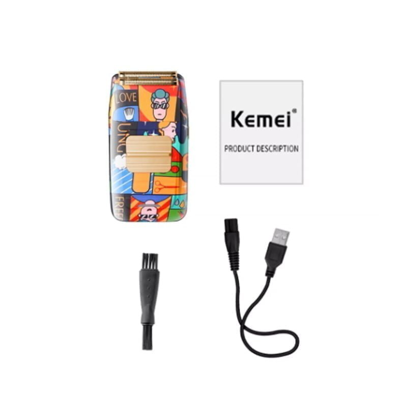 Ξυριστική μηχανή προσώπου της εταιρείας Kemei με δύο κεφαλές για βαθύ ξύρισμα. Είναι κατάλληλη τόσο για βρεγμένο όσο και για στεγνό δέρμα. Μπορεί να πλυθεί με νερό για εύκολο καθαρισμό. Λειτουργεί με επαναφορτιζόμενη μπαταρία και απαιτούνται 8 ώρες για μια πλήρη φόρτιση. Ταυτόχρονα, διαθέτει τεχνολογία γρήγορης φόρτισης για άμεσο ξύρισμα ακόμη κι αν η συσκευή δεν έχει φορτίσει πλήρως.