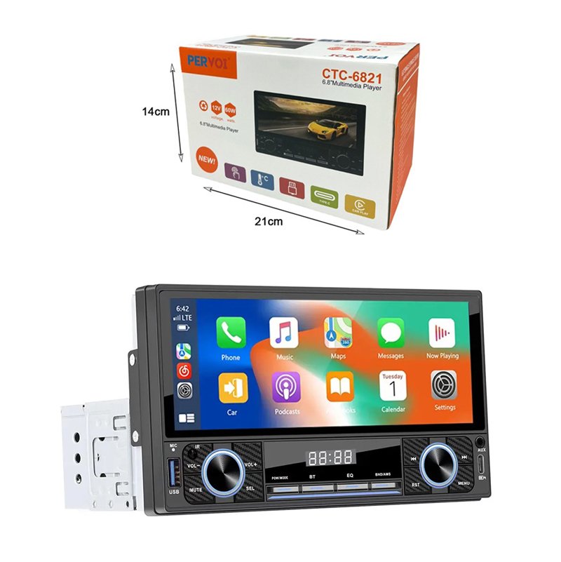 Ηχοσύστημα Αυτοκινήτου 1 DIN Bluetooth-USB-AUX- FM με Οθόνη Αφής 6.8″ 12V 4 * 60W CTC-6821