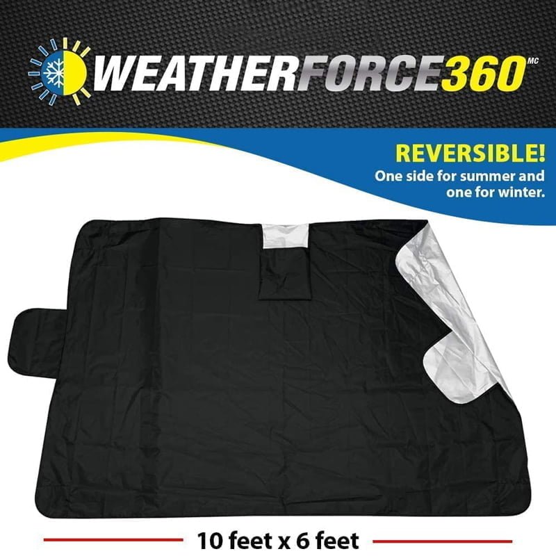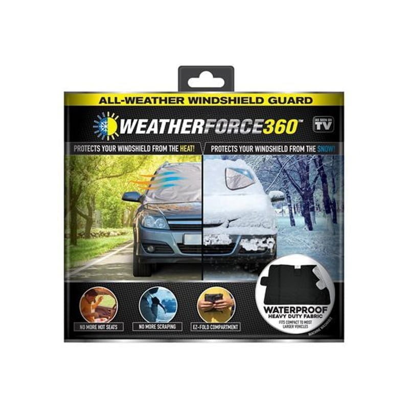 Το Weather Force 360 ​​είναι το τέλειο προϊόν για να κρατάτε τη ζέστη και το κρύο έξω από το αυτοκίνητό σας! Το Weather Force 360 ​​είναι το ανθεκτικό προστατευτικό παντός καιρού που επιτρέπει στο αυτοκίνητό σας να παραμένει δροσερό και άνετο κατά τη διάρκεια του καλοκαιριού και τον πάγο ή το χιόνι από το παρμπρίζ σας το χειμώνα! Το Weather Force 360 ​​διαθέτει διπλούς μεγιστάνες και ασφαλή μαξιλαράκια κλειδώματος. Είναι επίσης ανθεκτικό στο σχίσιμο που σημαίνει ότι προστατεύεται από την κλοπή του!
