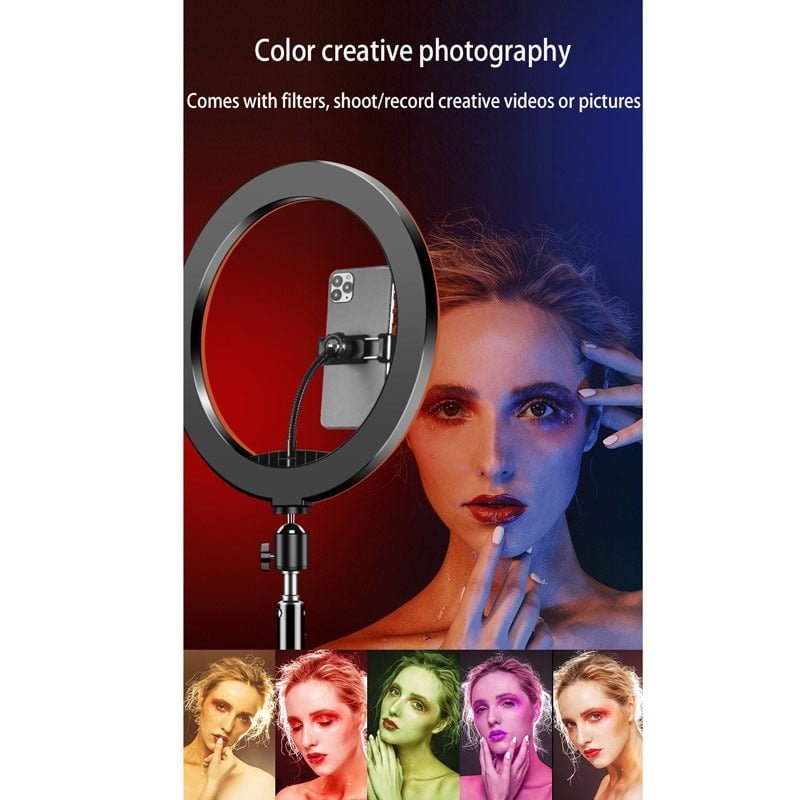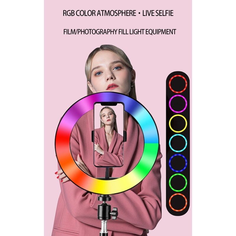 RGB LED RING LIGHT 8 ΙΝΤΣΩΝ ΜΕ ΡΥΘΜΙΖΟΜΕΝΗ ΒΑΣΗ ΓΙΑ ΠΕΡΙΣΤΡΟΦΗ 360 ΜΟΙΡΩΝ, ΔΙΝΟΝΤΑΣ ΣΑΣ ΠΟΛΛΕΣ ΕΠΙΛΟΓΕΣ ΧΡΩΜΑΤΩΝ ΚΑΙ ΓΩΝΙΩΝ.