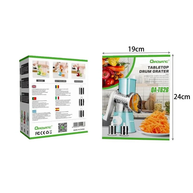 Qiaoyang Πολυκόφτης φρούτων και λαχανικών με 3 κεφαλές QA-T626 – Qiaoyang Tabletop Drum Grater QA-T626