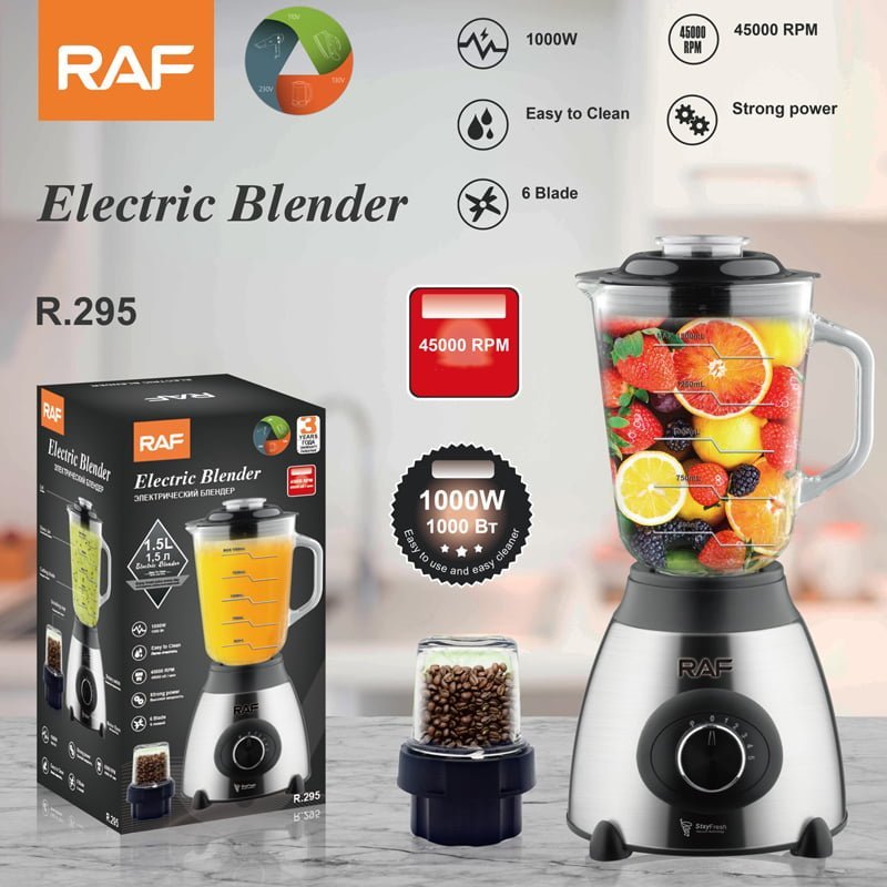 RAF Μπλέντερ με Γυάλινη Κανάτα 1.5lt 1000W Inox R.295 – Electric Blender