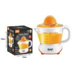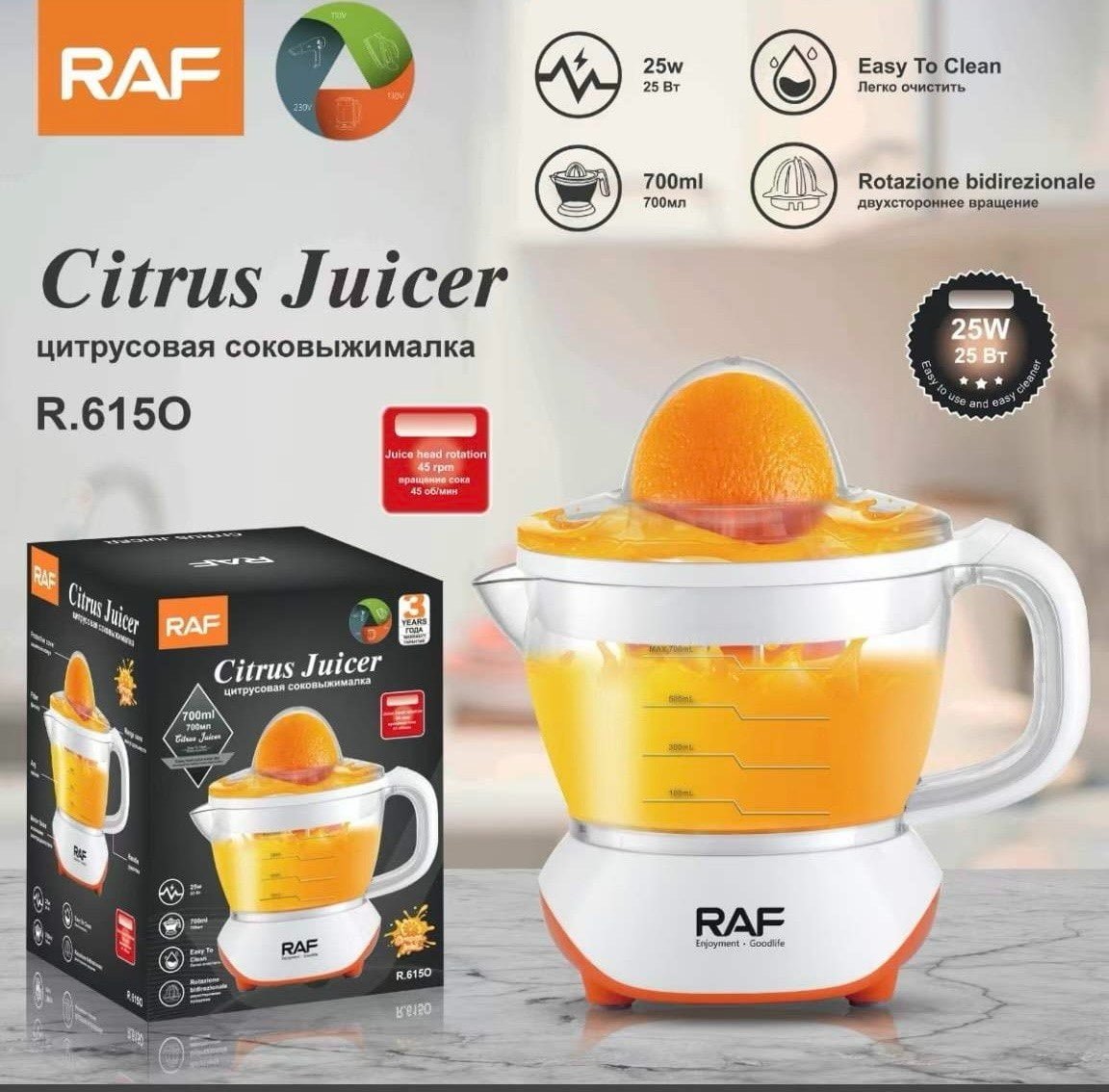 Ηλεκτρικός στίφτης, της εταιρείας Raf, με ισχύ 40 Watt. Διαθέτει έναν κώνο κανονικού μεγέθους κατάλληλο για πορτοκάλια, ώστε να απολαμβάνετε καθημερινά φρέσκους χυμούς, πλούσιους σε βιταμίνες. Το φίλτρο που συμπεριλαμβάνεται θα ξεχωρίσει τον χυμό από τον πολτό και τα κουκούτσια, δίνοντας σας το βέλτιστο αποτέλεσμα και την καλύτερη γεύση.