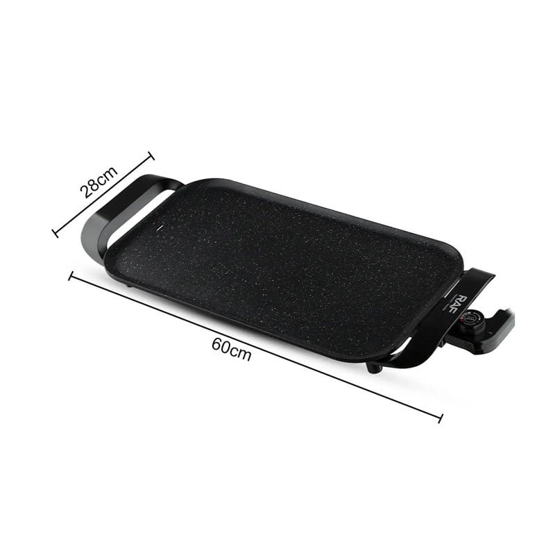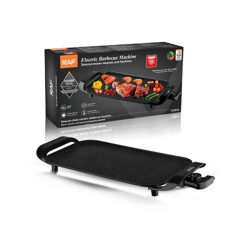 Ψησταριά-μπάρμπεκιου Raf με μέγιστη ισχύ 1800W για ψήσιμο φαγητών όπως το ψάρι, το κρέας, τα λαχανικά ή ακόμα και πιο ιδιαίτερων υλικών όπως το αυγό.Το πλεονέκτημα των ηλεκτρικών ψησταριών είναι ότι ανάβουν αμέσως και πιάνουν θερμοκρασία γρήγορα.Η ψησταριά αυτή έχει επιφάνεια ψησίματος 50x27cm.Παρέχει δυνατότητα ρύθμισης θερμοκρασίας στο επιθυμητό επίπεδο ανάλογα με το είδος του φαγητού που θέλετε να μαγειρέψετε.Χαρακτηριστικά:
