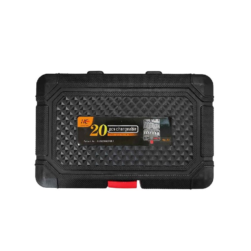 Αυτό το σετ ξεχωρίζει καθώς έχει ακριβή σχεδιασμό, απλή λειτουργία και είναι πολύ βολικό στη χρήση σε μικρούς χώρους. Είναι κατασκευασμένο από υψηλής ποιότητας ατσάλι χρώμιο βαναδίου, επιχρωμιωμένο στην επιφάνεια, με υψηλή σκληρότητα, υψηλή ροπή και καλή σκληρότητα. Είναι βολικό να χρησιμοποιείτε το κλειδί για να επιτύχετε περιστροφή προς τα εμπρός σε διάφορες χωρικές γωνίες και να συνειδητοποιήσετε τη χρήση θετικής και αρνητικής αναστροφής. Έχει πολύ εύκολη χρήση και λειτουργία. Πατήστε το κουμπί και μπορείτε να αλλάξετε τις προδιαγραφές του κλειδιού που χρειάζεστε.